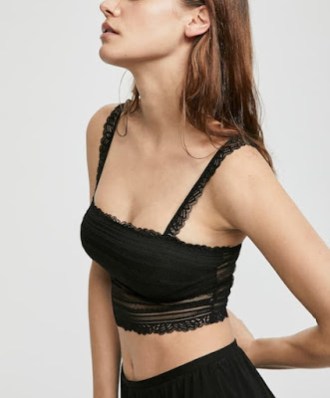Je crois vraiment que les soutiens-gorge à armatures, si bien taillés et adaptés à la morphologie de chacun-e, ne sont pas intrinsèquement inconfortables. Ceci dit, je dois admettre qu’ils peuvent être un peu imprévisibles. Votre soutien-gorge préféré, le plus confortable de votre collection, peut soudainement se transformer en instrument de torture si vous êtes déshydraté-e ou un peu gonflé-e sous l’effet de la chaleur, des choses qui arrivent souvent quand on voyage. De fait, je choisis habituellement soit mon soutien-gorge Etched (qui ne semble plus être disponible en ligne), le soutien-gorge armaturé le plus confortable que j’ai jamais mis, ou une brassière efficace. Bien que je n’ai pas besoin de beaucoup de maintien, quand je voyage, j’opte pour des designs assez couvrants afin de ne pas avoir à rajuster quoique ce soit pendant le trajet. Ma brassière préférée est le modèle Opulence de Playful Promises que j’ai depuis des années mais qui n’est malheureusement plus vendu. La nouvelle brassière brodée de Bettie Page Lingerie devrait offrir une coupe similaire, et j’ai inclus d’autres options ci-dessous.