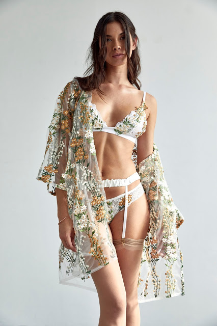 Floral Lingerie Set by Larissa Kate / XS-L / $145 (robe) + $62 (bralette) + $55 (brief) (suspender belt not sold directly)